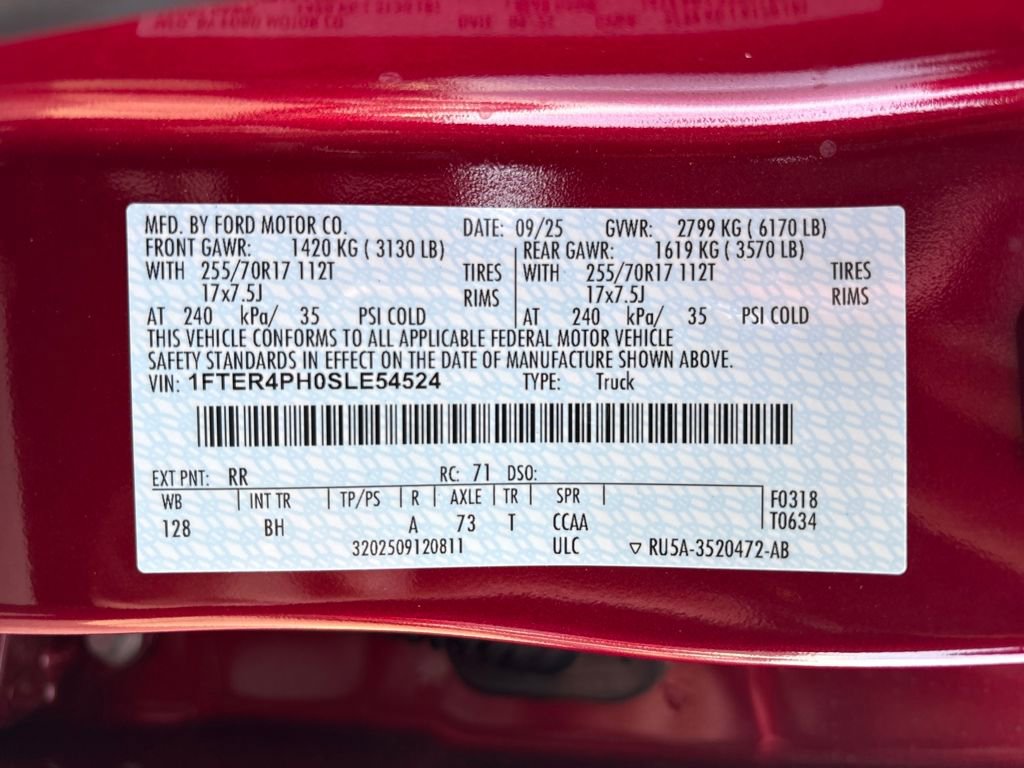 Ruby Red Metallic Tinted Clearcoat 2025 Ford Ranger XL 4WD 10-Speed Automatic EcoBoost 2.3L I4 GTDi DOHC Turbocharged VCT 4WD.