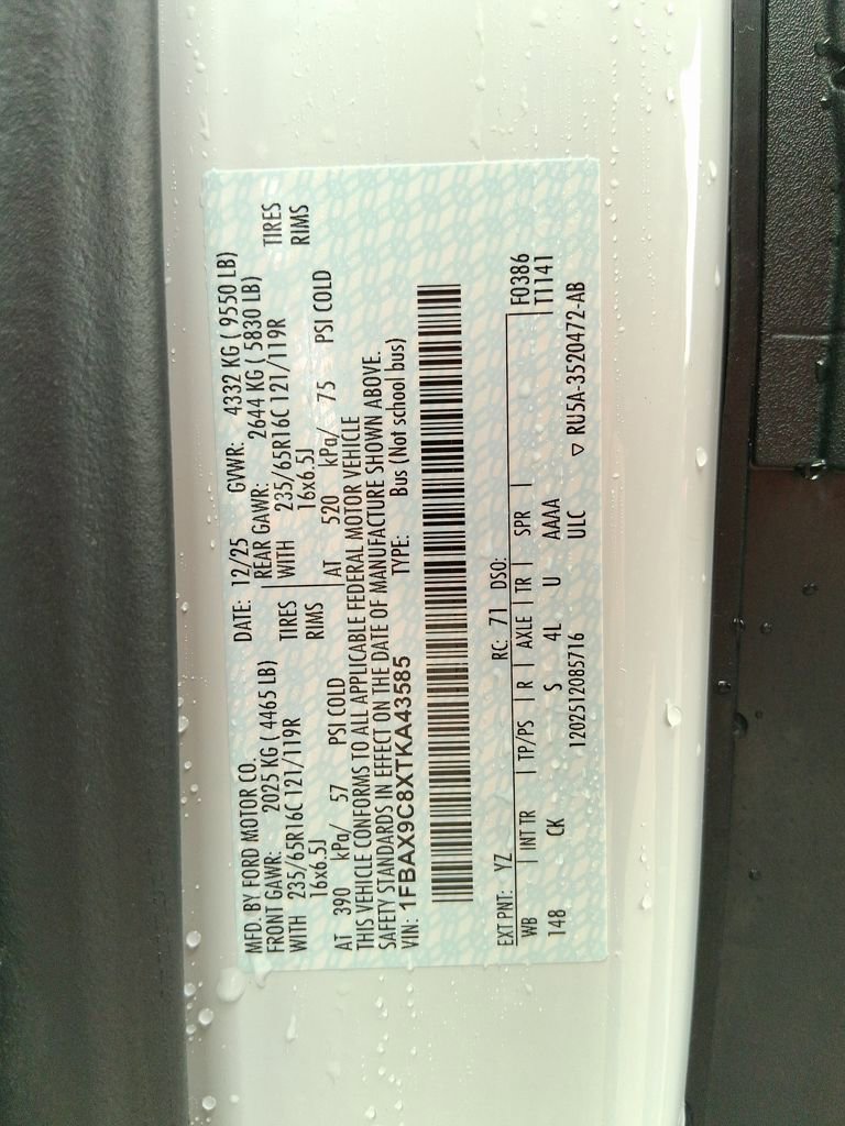 Oxford White 2026 Ford Transit-350 XL AWD 10-Speed Automatic with Overdrive 3.5L V6 Flex Fuel